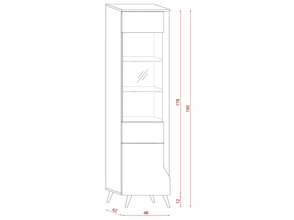 - Longueur 46 cm x Largeur 42 cm x Hauteur 190 cm – Poids net : 49.5 kg.