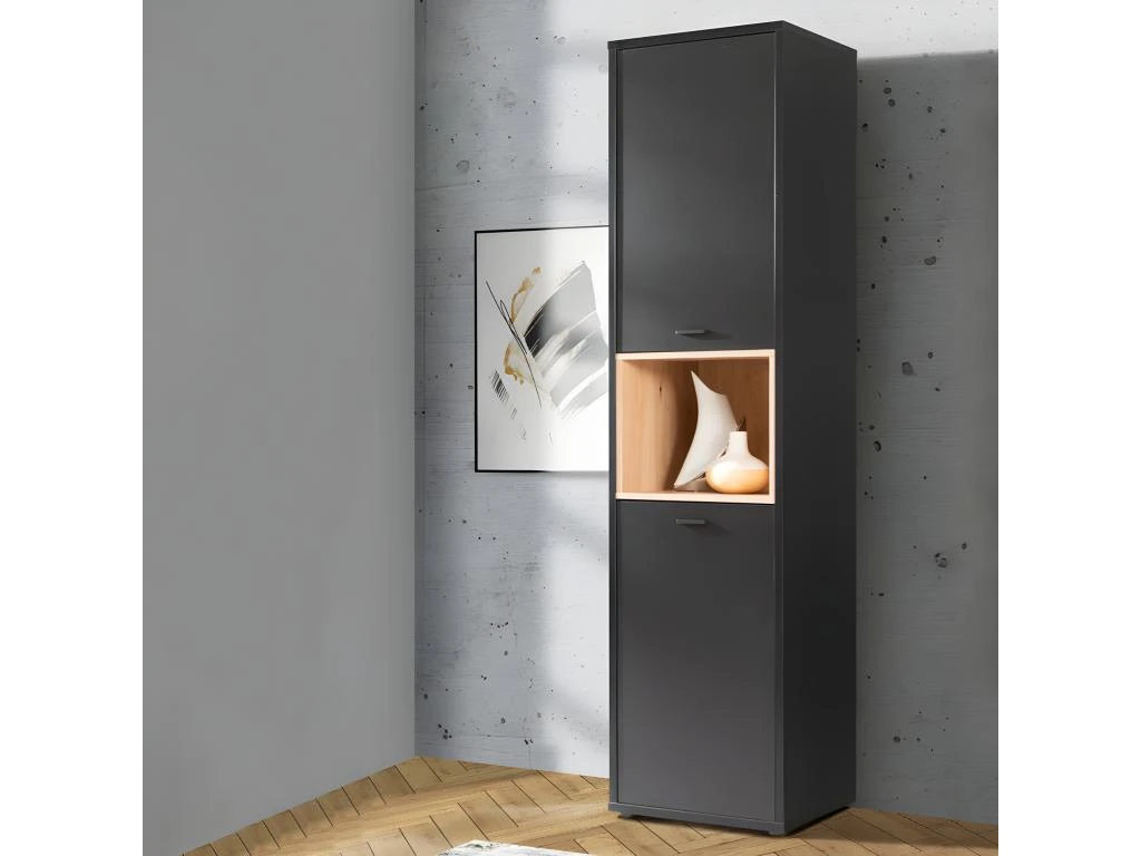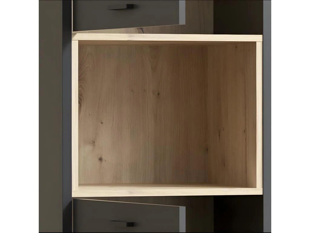 Cette colonne incarne à la perfection l’alliance entre l’élégance et la modernité ! Vous pourrez l’intégrer dans votre séjour, votre bureau ou l’utiliser comme paroi TV avec d’autres meubles de la même collection, elle ira à merveille chez vous. Les portes réversibles offrent la flexibilité de la positionner où bon vous semble, tout en vous permettant de ranger vos affaires sur ses tablettes ajustables en hauteur et d’exposer d’autres objets sur son espace de rangement ouvert. La teinte noire de cette colonne est sublimée par une délicate touche de chêne, apportant une note de couleur et de chaleur au meuble. Ses poignées noires ajoutent quant à elles une subtile finesse à l’ensemble. P