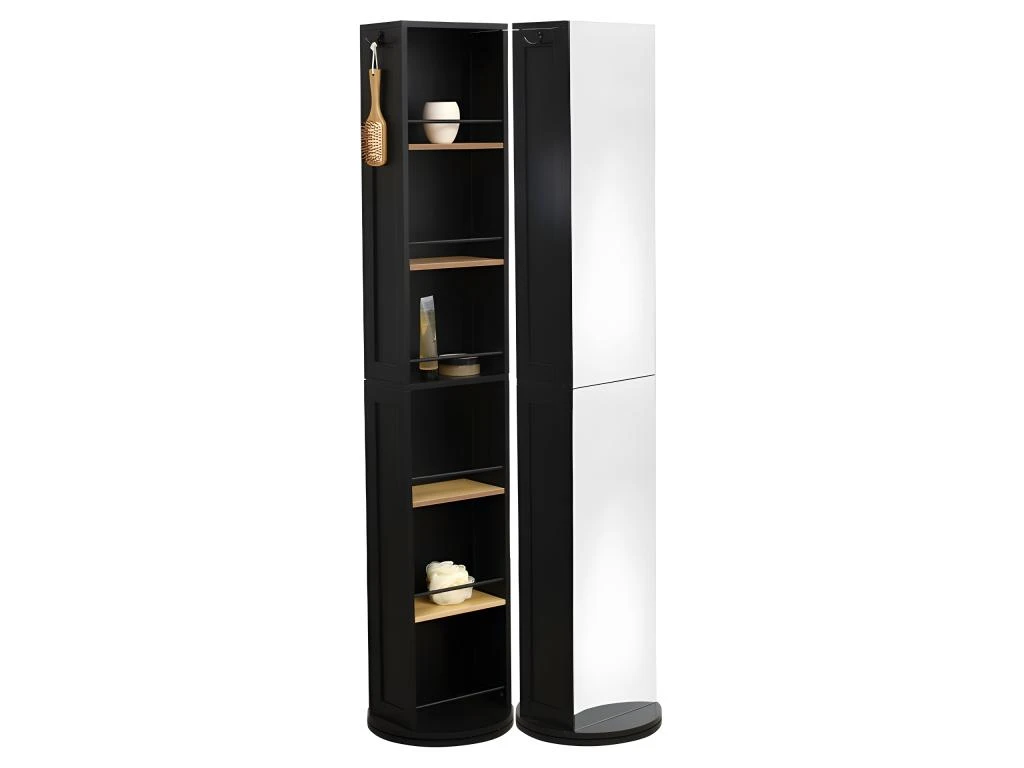 La colonne miroir pivotante 360° avec rangement sera l’atout pratique et esthétique de votre salle de bain. Elle dispose de multiples rangements : 6 niches et 2 patères latérales. Les petites touches façon bambou réhausseront le style de cette colonne. A monter soi même. Dimensions: L. 30 x H. 170 x P. 18 cm. Poids : 16.78 kg. Matière : Panneaux de particules et verre. Marque : Tendance.