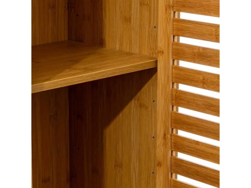 Colonne pour la salle de bain Sicela, en bambou massif. 2 portes avec encoches à gauche pour l’ouverture des portes vers la droite. Portes ajourées évoquant des persiennes. A monter soi-même. Coloris naturel. En bambou massif. Dimensions 34×24 cm, hauteur 170 cm. Poids 9.6 kg.