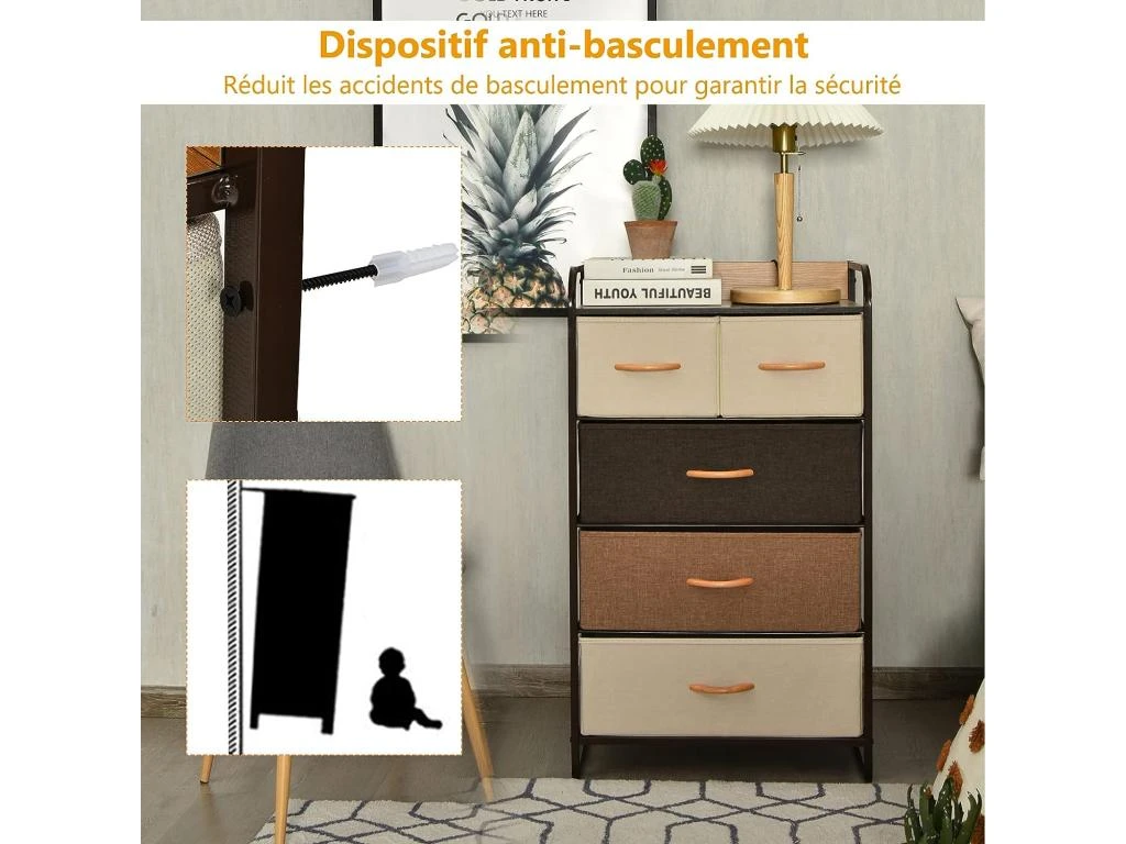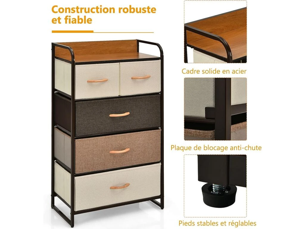 - Grande capacité et tissu de qualité supérieure : cette commode est dotée de 5 tiroirs pliables et amovibles de 2 tailles différentes. Elle offre un grand espace pour vous permettre de ranger les articles par type, notamment les vêtements, les jouets, les écharpes, les chaussettes, etc., pour un espace ordonné. De plus, les tiroirs sont fabriqués en tissu de qualité respirant, non toxique et résistant.