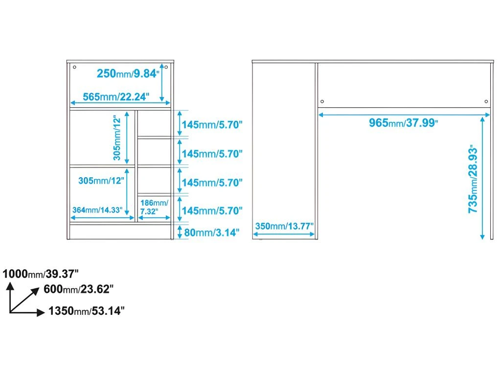 Longueur 135 cm Hauteur 100 cm Profondeur 60 cm