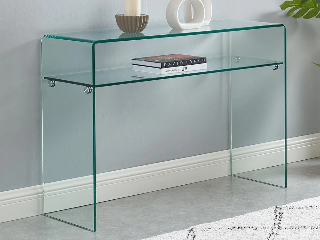 Les meubles STILEOS charment par leurs lignes modernes et élégantes. Réalisés en verre trempé courbé d’une épaisseur de 12mm, ces meubles sont conçus pour être robustes et résister à l’épreuve du temps tout en apportant une touche claire et lumineuse à votre intérieur. La niche de cette console vous permet de disposer d’un espace de rangement supplémentaire.