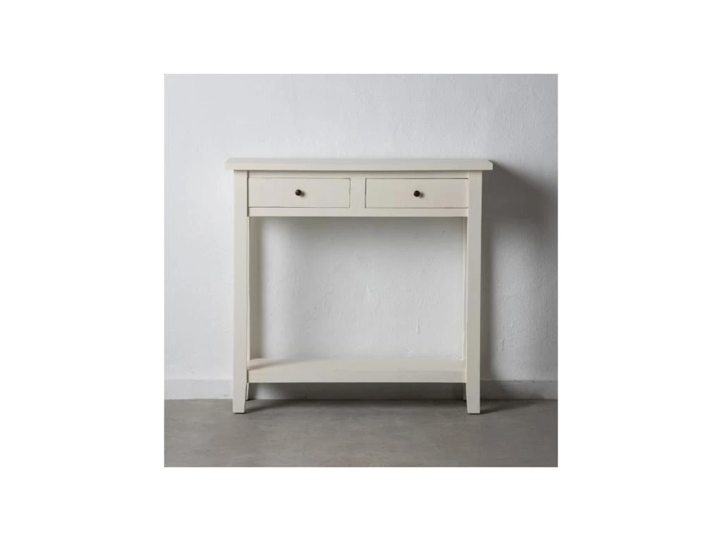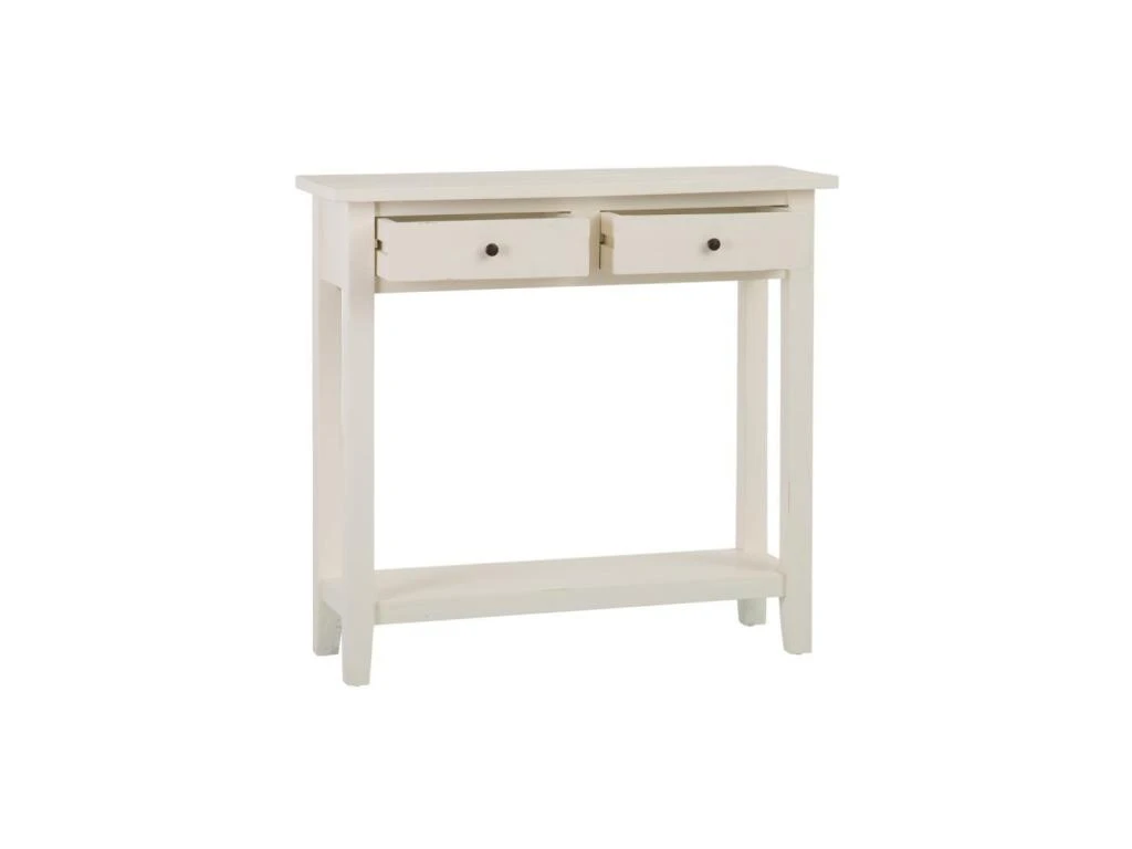 Mise en teinte lumineuse et design intemporel garantissent à cette console 2 tiroirs de pouvoir prendre place dans une déco ambiance bord de mer.