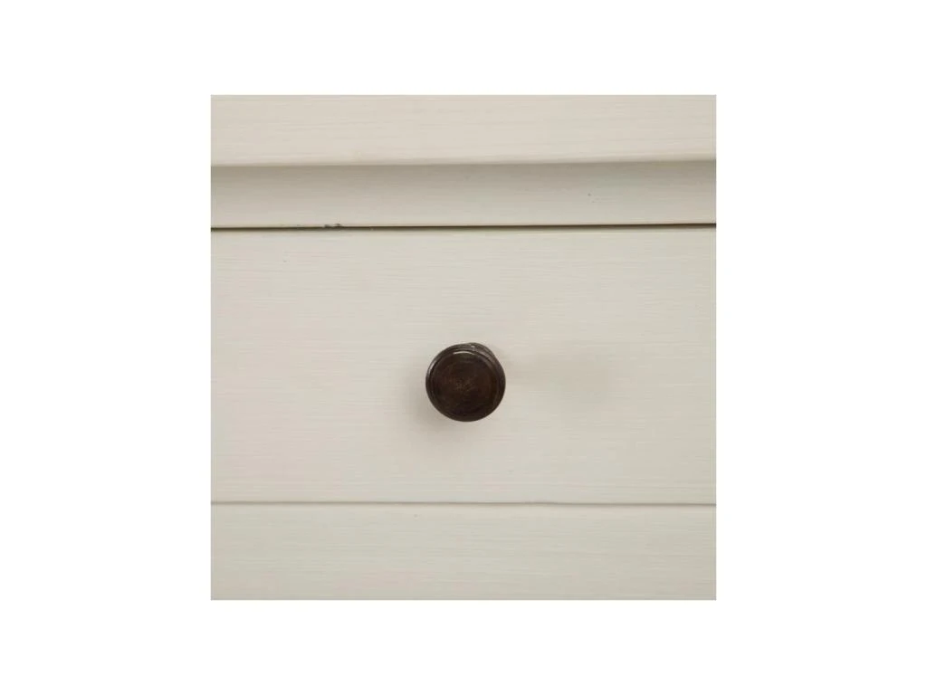 Mettant en oeuvre du bois de Mindi ce meuble de complément bénéficie d’une robustesse satisfaisante et d’une qualité perçue valorisante, revêtu d’une laque blanc cassé il propose aussi un léger vieillisement qui lui apporte authenticité et unicité.