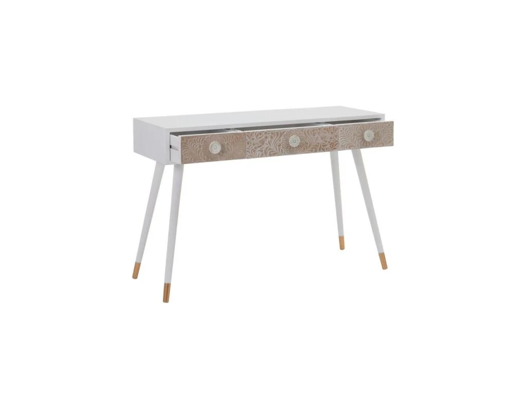 Design original et matériaux authentiques pour cette console 3 tiroirs qui ne manquera pas de devenir l’élément majeur de la déco de votre salon ou de votre entrée.