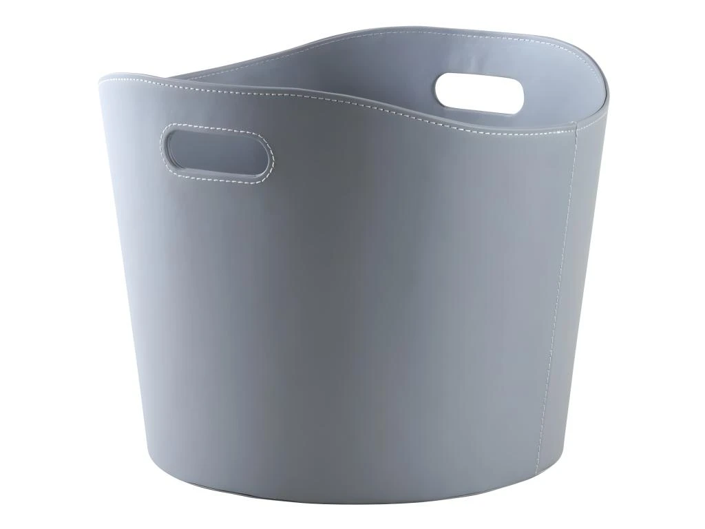 La corbeille à bûches en polyuréthane gris apporte une touche de modernité au coin de la cheminée