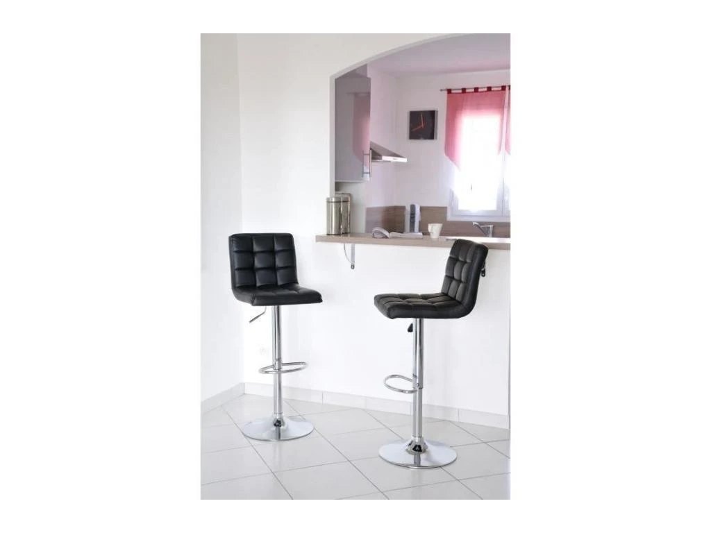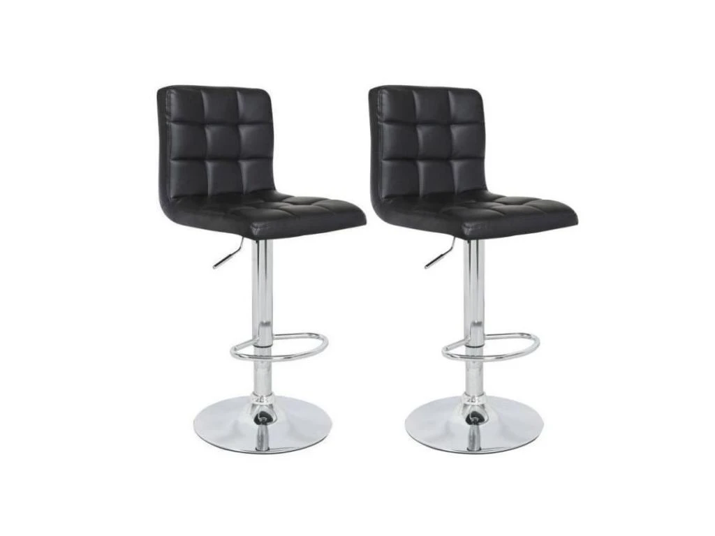 CRUNCH Lot de 2 tabourets de bar – Design et contemporain – Structure en métal chromé et revetement en simili – Réglable en hauteur – Garnissage : mousse polyuréthane – Densité : 24 kg/m3 – Motif uni – Visserie et notice de montage livrés – Dimensions tabouret : 41,5x48x91,5/113,5 cm – Dimensions assise : 41,5x48x76,5 cm.