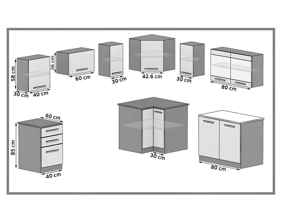 DARCIA | Cuisine Complète D’angle + Modulaire L 300 Cm 9 Pcs | Plan De Travail INCLUS | Ensemble Armoires Placards Cuisine