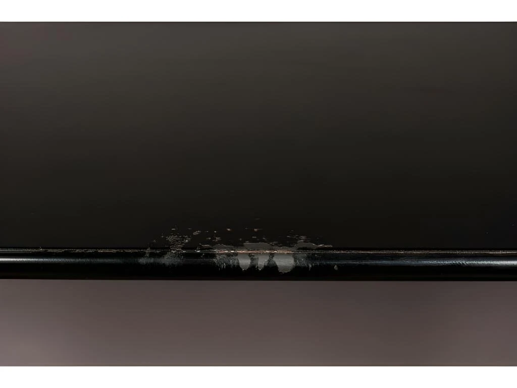 Structure 100 % en acier noir avec une finition délibérément vieillie.