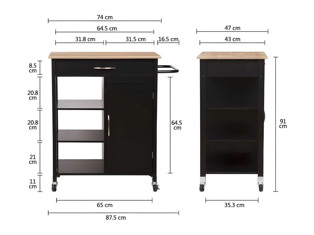ENZO desserte de cuisine 1 porte 1 tiroir 3 étageres en hévéa, pin et mdf coloris laqué noir