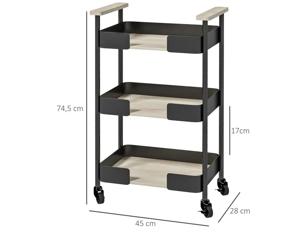 – Chariot sur roulettes en acier noir et aspect bois clair design industriel très élégant