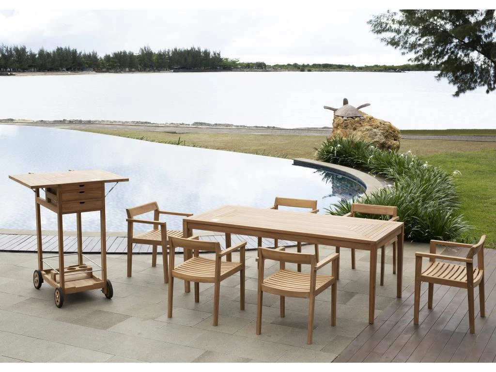 Optez pour la résistance exceptionnelle du bois de teck et le design tendance de la salle à manger de jardin ALLENDE