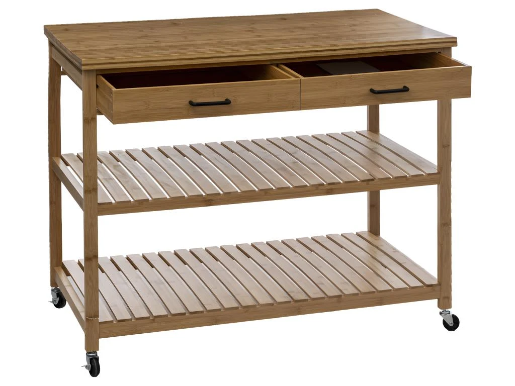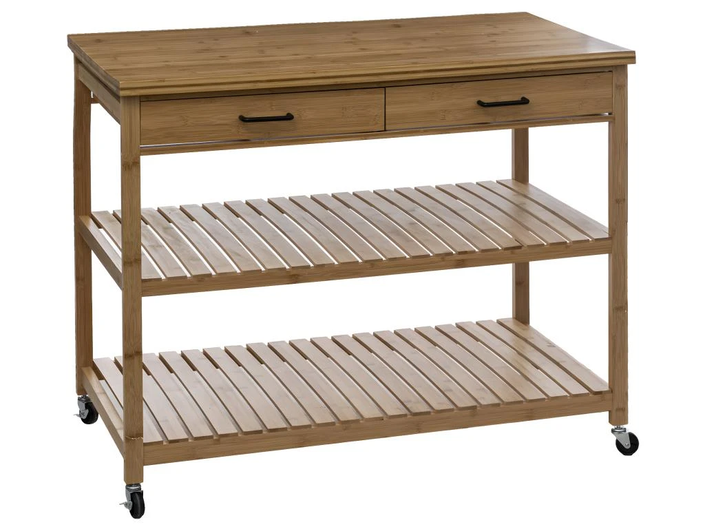 Îlot de cuisine avec plan de travail, étagères et tiroirs –
