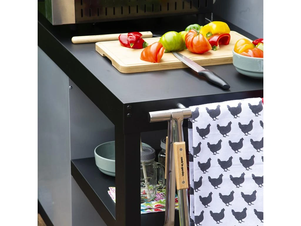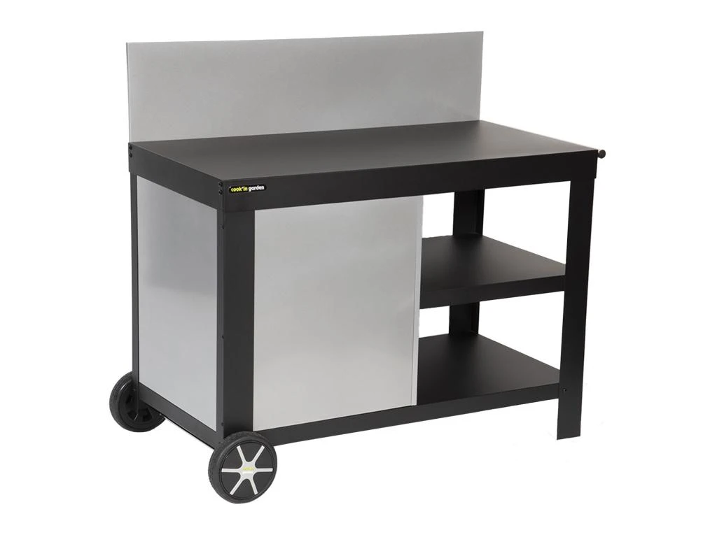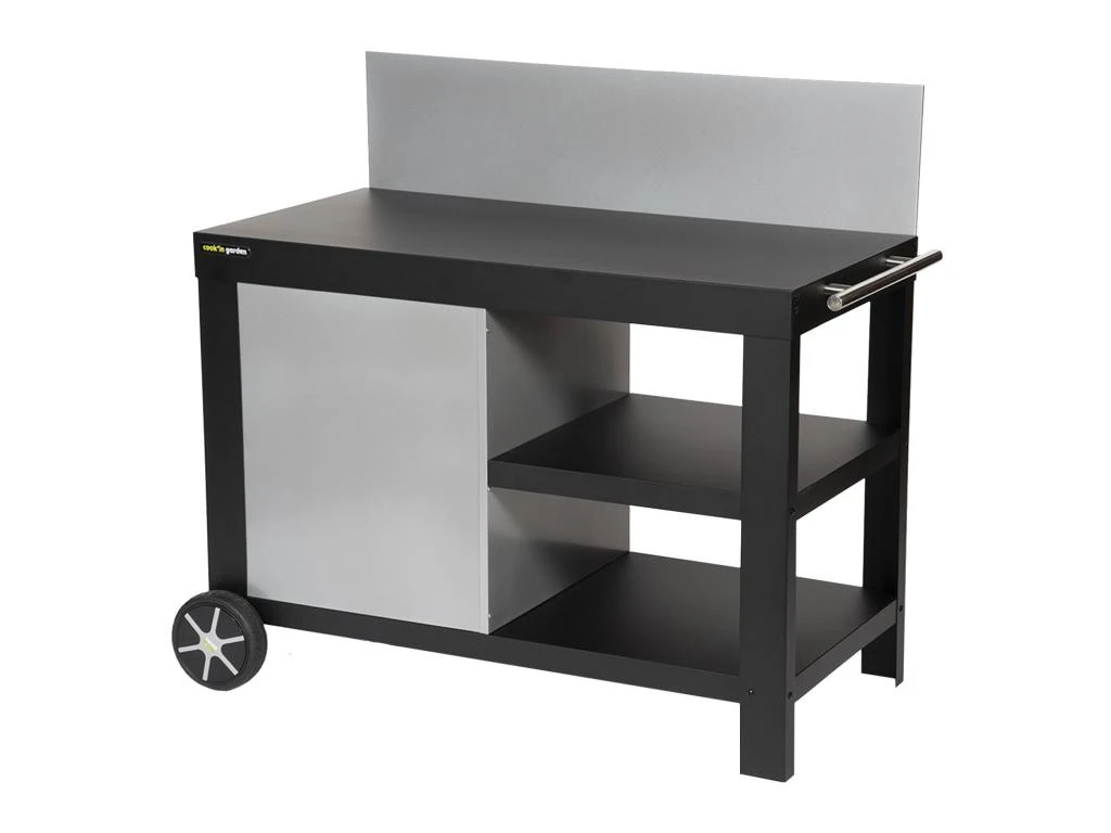 Besoin d’un meuble d’appoint pour préparer vos repas à la plancha en extérieur ou en intérieur ? La desserte pour plancha NOVA est l’accessoire qu’il vous faut ! Pratique pour déplacer facilement votre plancha au gaz ou électrique, elle dispose de 2 grandes roues et d’une poignée latérale pour l’amener de votre jardin à votre table à manger. Ses deux plateaux, l’un bas et l’autre intermédiaire, peuvent accueillir votre vaisselle, vos ustensiles de cuisine et vos ingrédients pour avoir tout à portée de main. Une crédence est présente sur ce chariot à plancha afin d’éviter de projeter des éclaboussures sur vos convives pendant la préparation. Cette desserte noire deviendra vite indispensable.