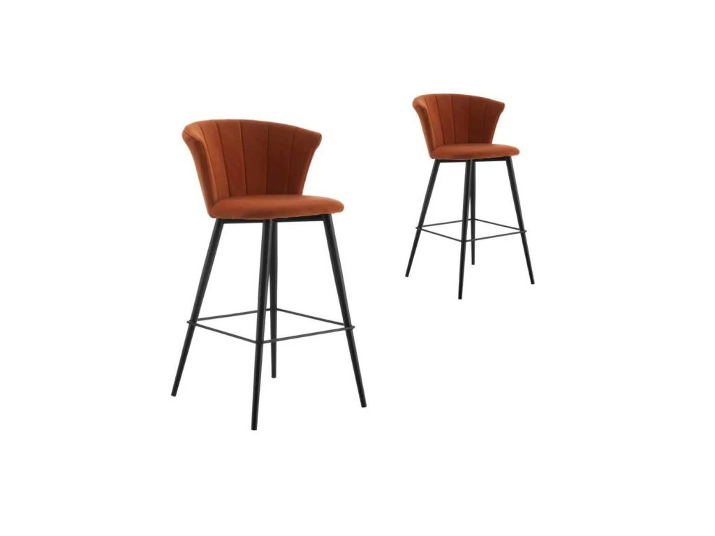 Revêtu de tissu velours à la très belle teinte terracotta ce duo de chaises hautes pourra prendre place derrière un comptoir de bar au goût du jour.