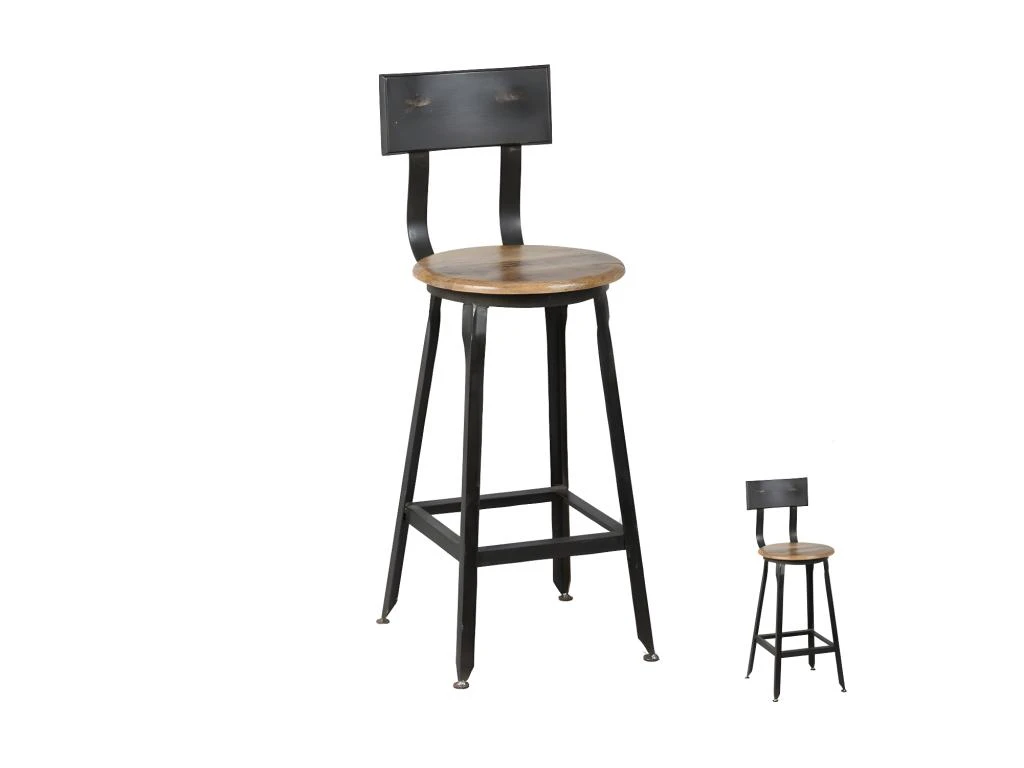 La très solide structure en acier se marie au bois massif pour donner un look sans concession à cette chaise de bar étonnante.