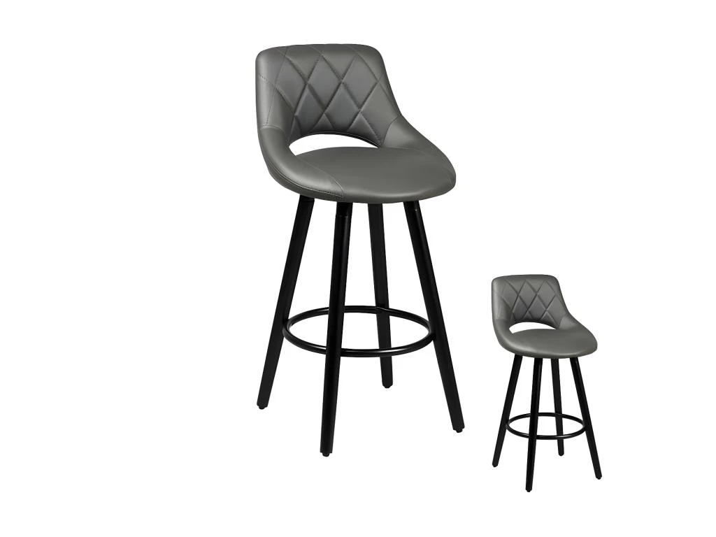 Son piétement en frêne finition laqué anthracite confère à ce tabouret de bar une esthétique contemporaine et une stabilité rassurante, le revêtement Gris est mis en valeur par le piétement.