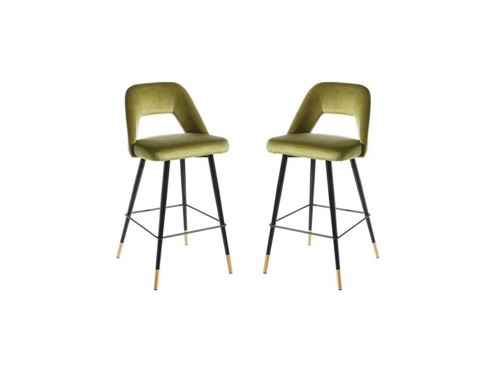 Ce duo de chaises hautes propose une caracasse au look très nettement inspiré des meubles Vintage et Art nouveau délicatement mise en valeur par un tissu Velours teinte Vert, original et agréable.
