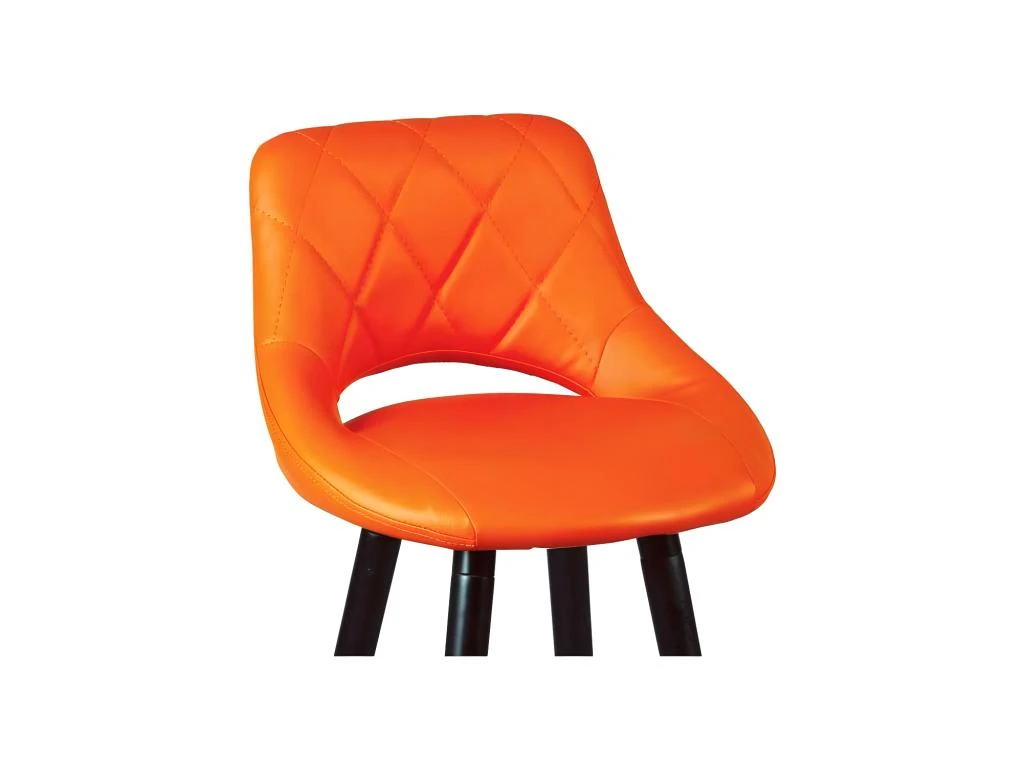 Son piétement en frêne finition laqué anthracite confère à ce tabouret de bar une esthétique contemporaine et une stabilité rassurante, le revêtement Orange est mis en valeur par le piétement.