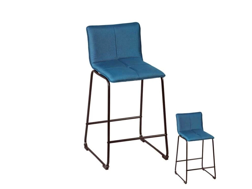 Lot de 2 tabourets de bar moderne turquoise pieds acier laqué noir ambiance contemporaine Dimensions: L 41 x l 45 x H 93 cm Matière: Assise en tissu et pieds en acier Tissu déperlant turquoise Mousse polypropylène 30kg/m3 Hauteur d’assise : 67 cm Assemblage: Livré démonté – 6,4 kg