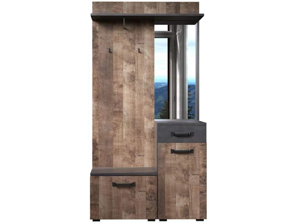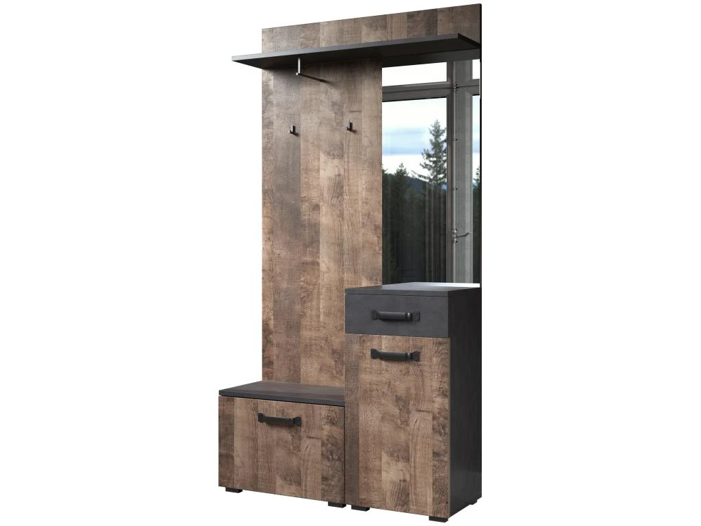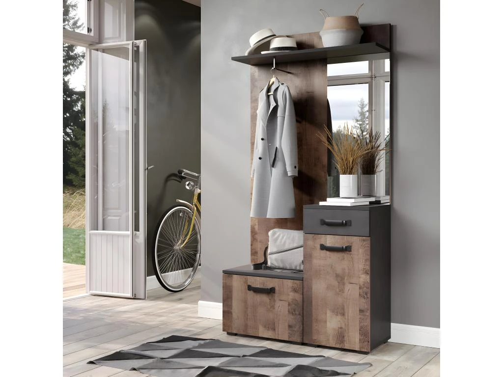 Ensemble de 4 meubles d’entrée – Mélaminé – Naturel/Gris – 104 / 190 / 32 cm