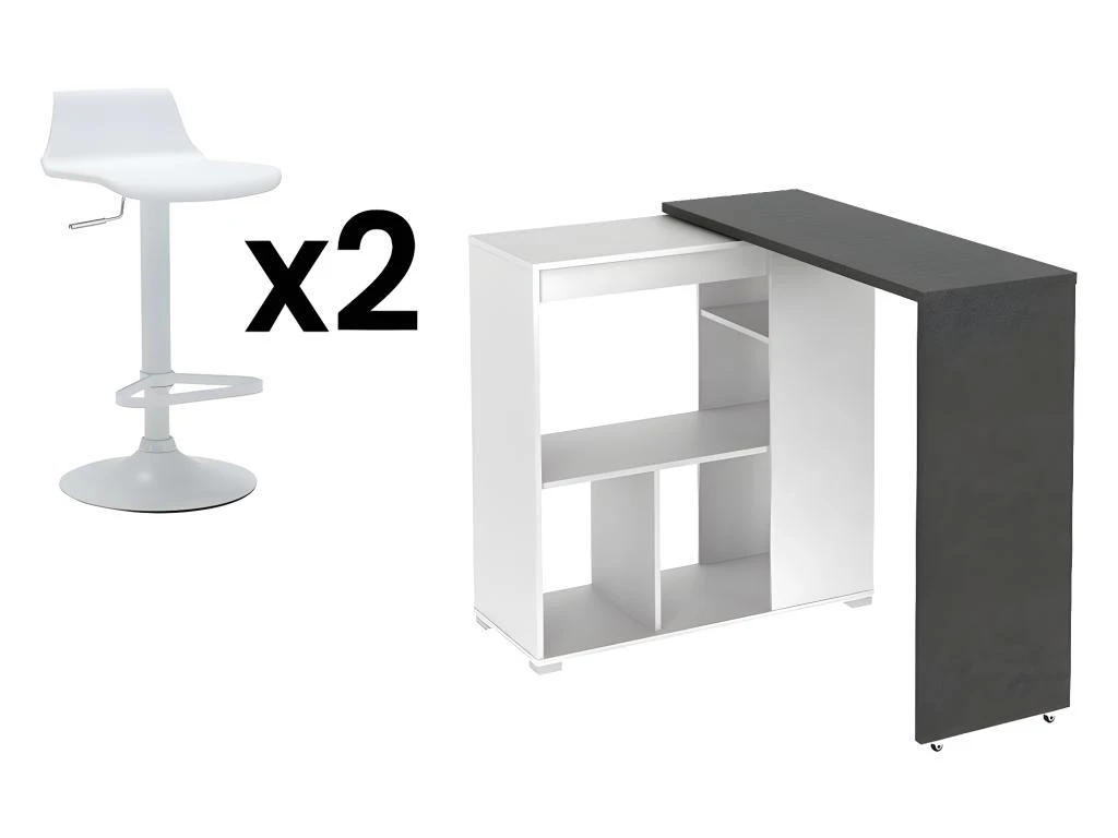 Cet ensemble contient 1 meuble de bar SATURNE et 2 tabourets de bar CALAS !