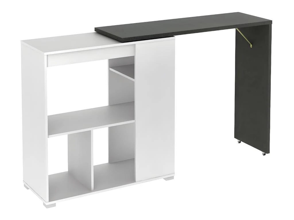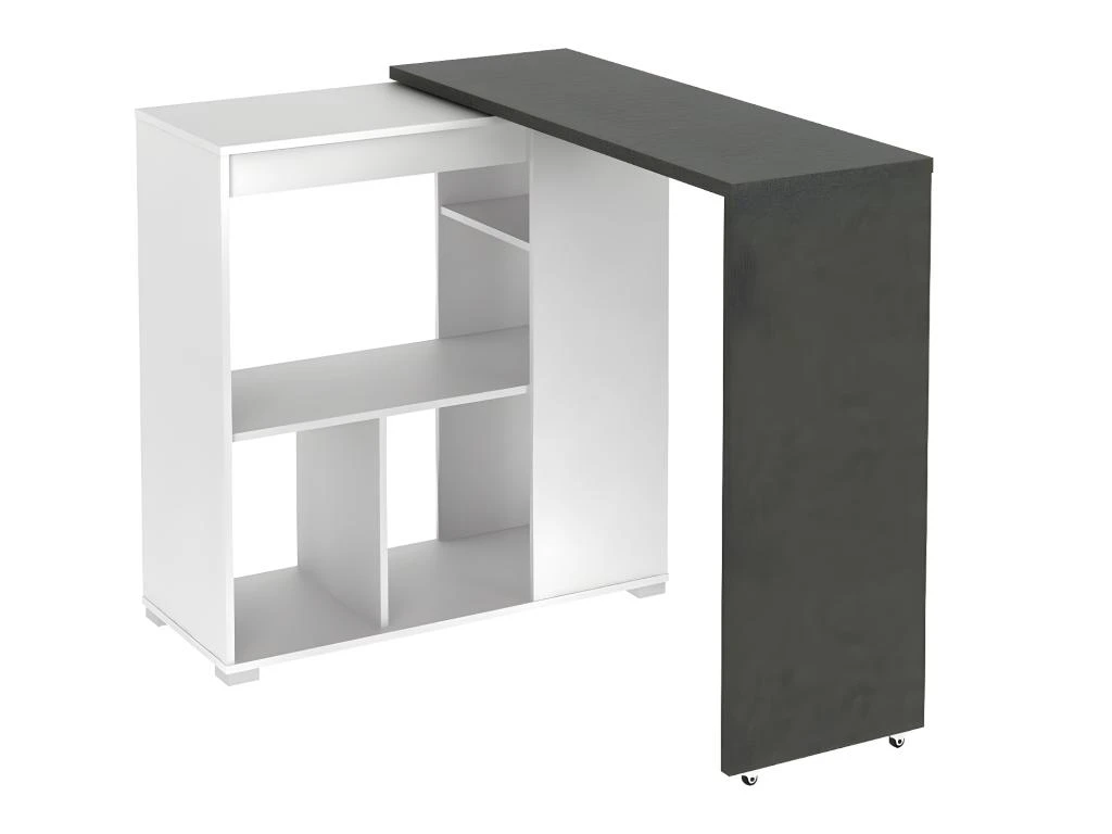 Découvrez un ensemble « mange-debout » design et fonctionnel. En effet, le meuble de bar SATURNE dispose d’un plateau pivotant modulable à souhait. Grâce à ses six niches de rangement, vous pourrez facilement y encastrer votre micro-ondes et ranger votre vaisselle. De plus, le tabouret de bar CALAS saura parfaitement prendre place chez vous grâce à son look contemporain ! Avec son cale-pieds triangulaire très pratique et son look « all white », ce tabouret saura vous séduire !
