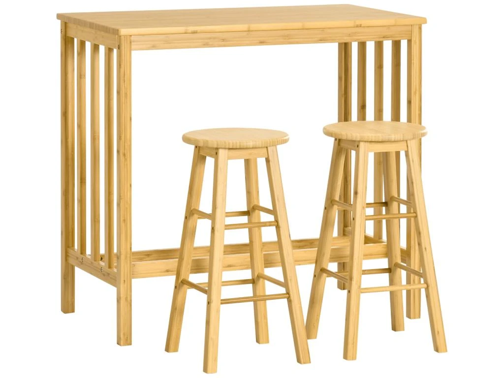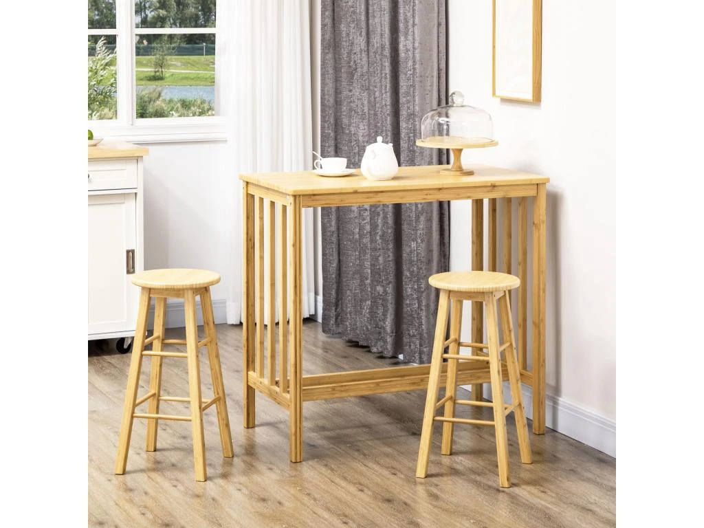 – Ensemble table de bar + 2 tabourets assortis en bambou verni style cosy idéal pour apporter une touche d’élégance supplémentaire à votre intérieur