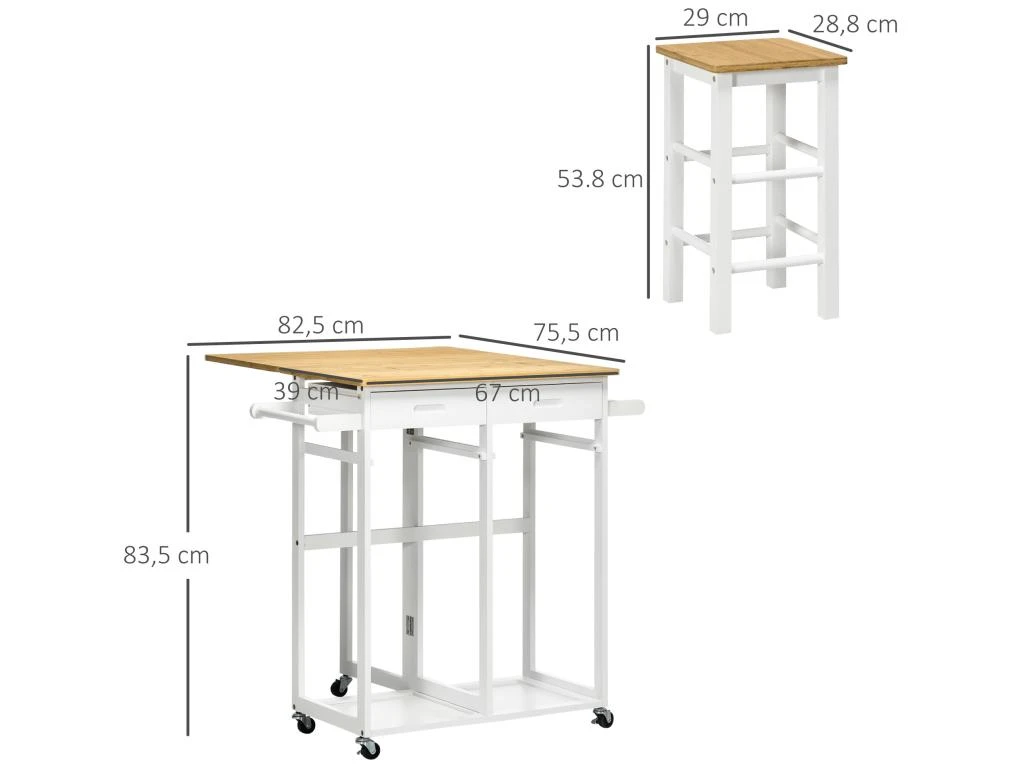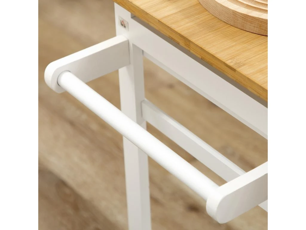 – Charge max. recommandée : 40 Kg (table), 120 Kg (tabouret), 1 Kg (porte-torchon), 2 Kg (tiroir)