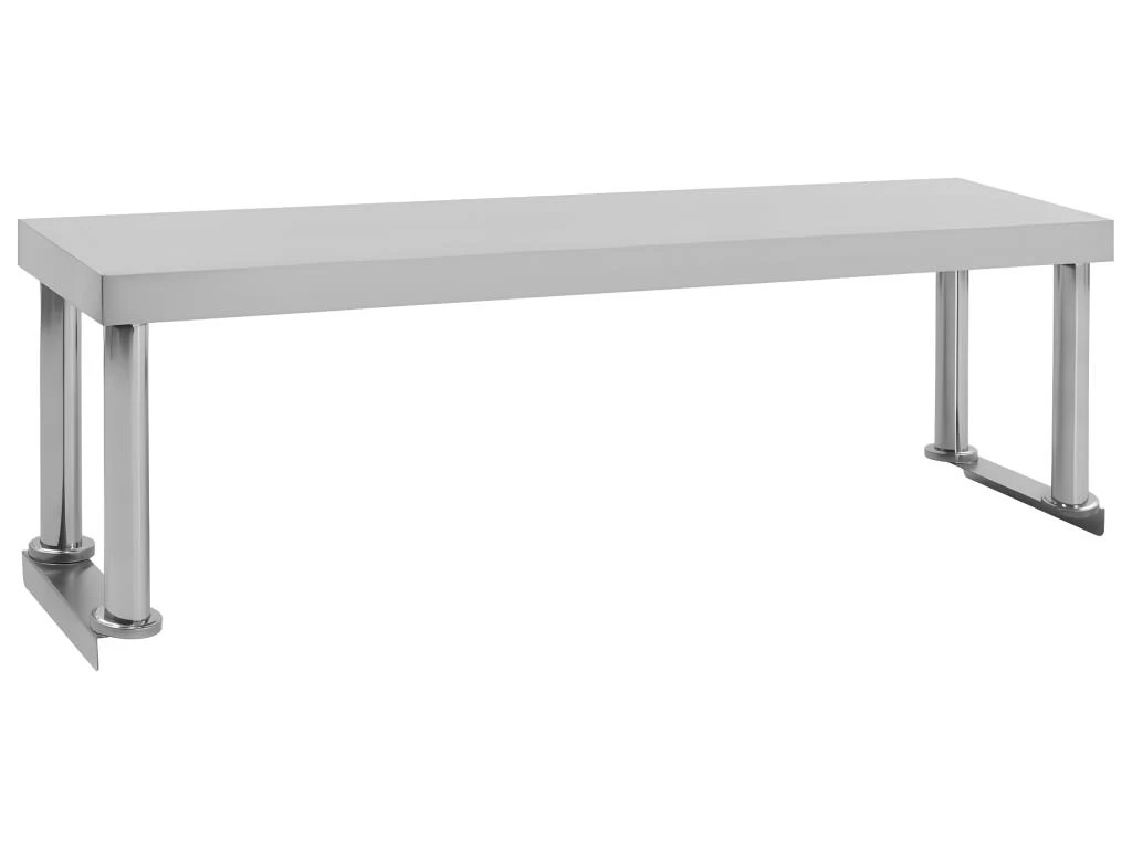 Cette étagère monocouche est conçue pour être montée directement sur une table ou un poste de travail en acier inoxydable existant, ce qui peut augmenter votre espace de stockage et de travail.