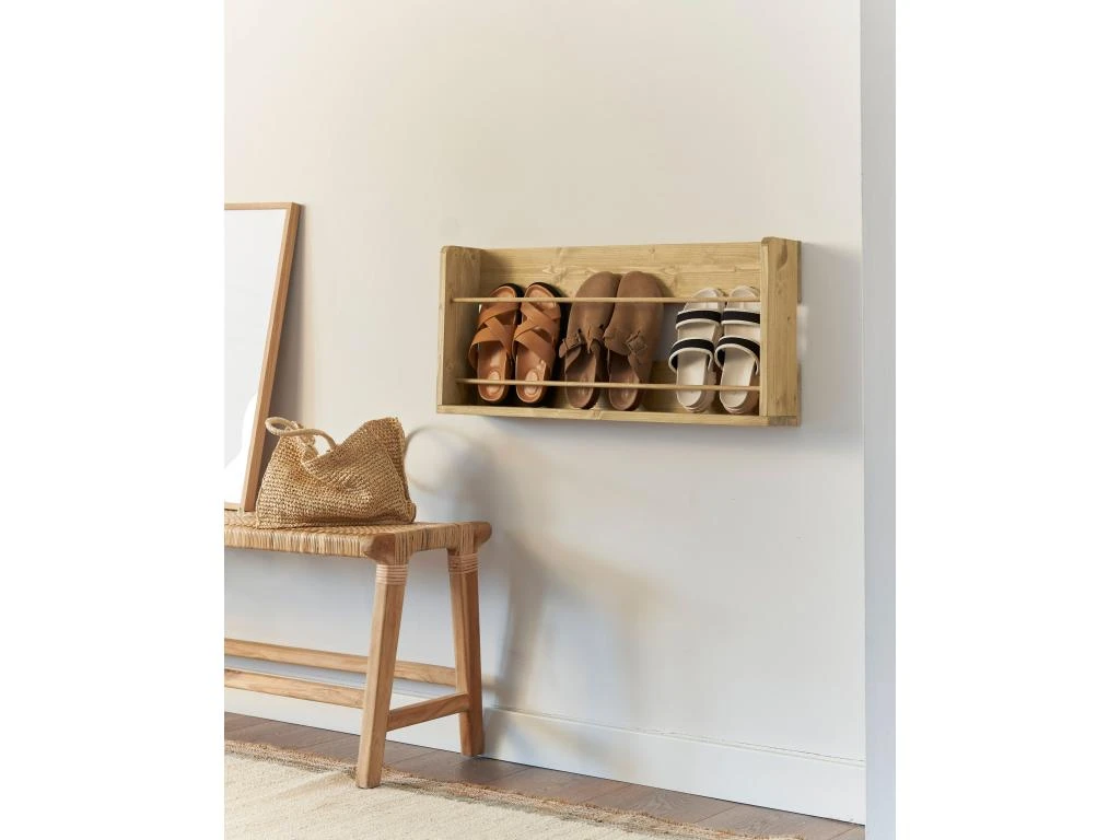 Étagère à chaussures murale fabriquée artisanalement.