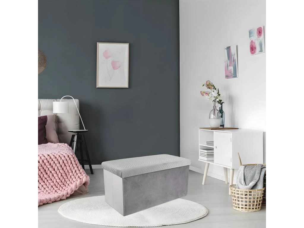 Coffre Banc Pliable Velours Gris Clair de la gamme Floy.