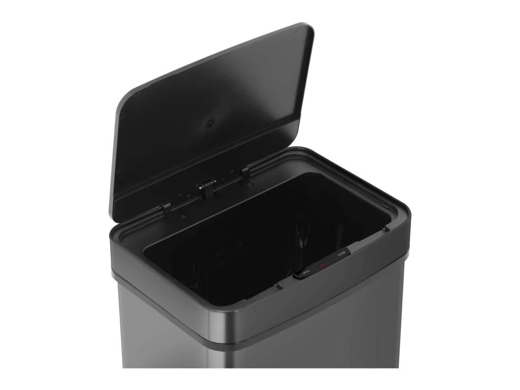 Il est particulièrement facile d’entretien grâce à ses surfaces lisses et à son revêtement noir, anti-traces de doigts, qui renforce l’allure hygiénique de la poubelle sans contact.