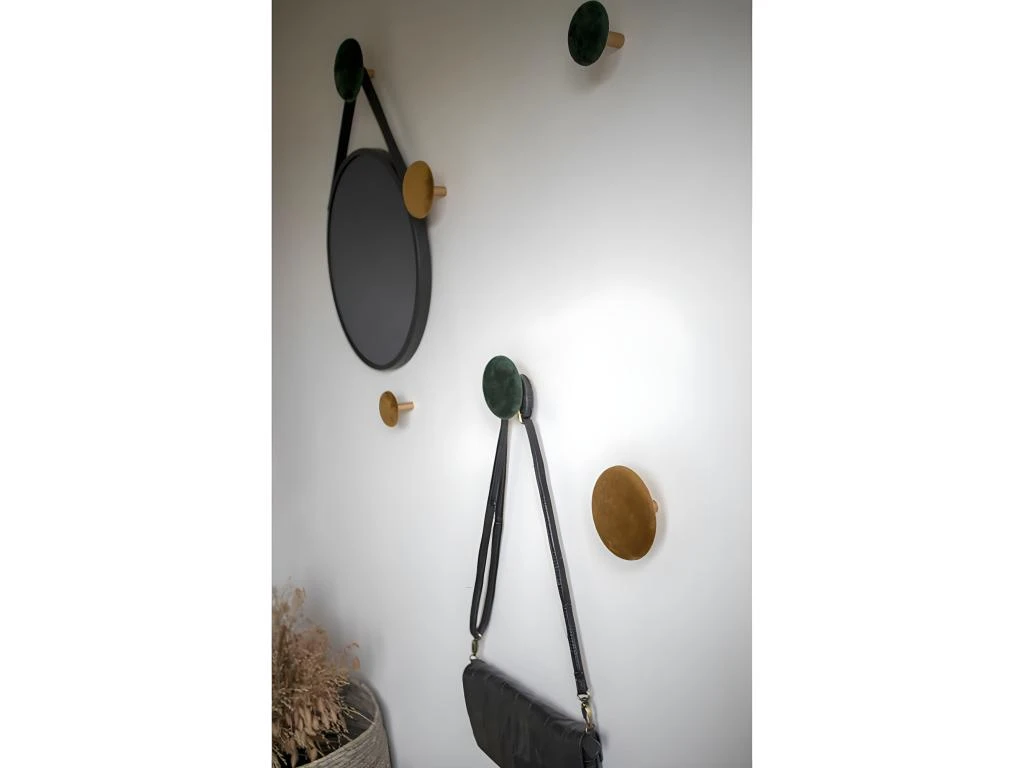 Lots de 3 Patères Rondes Velours Vert et Aspect Laiton de la gamme Gizeh.