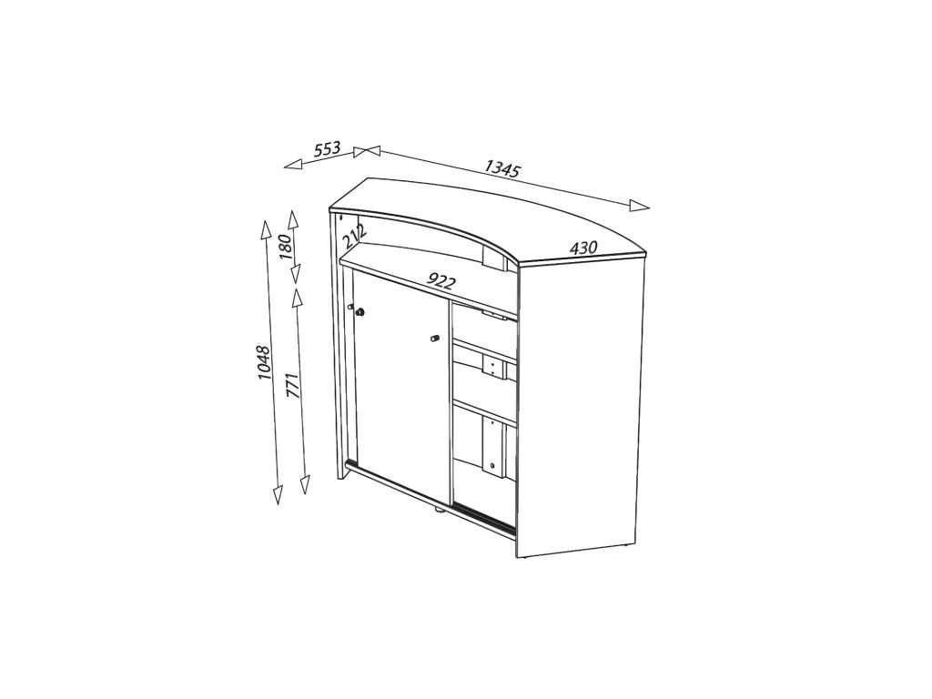 Le revers du meuble offre une grande niche ouverte et un espace de rangement accessible par 2 portes coulissantes munies d’une fermeture à clef, 3 niveaux de pose sont disponibles à l’intérieur