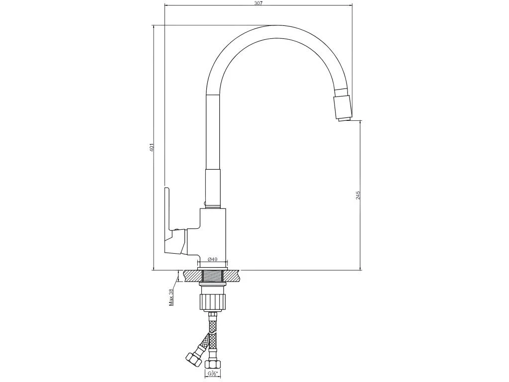 – Type: robinet d’évier de cuisine à levier unique;
