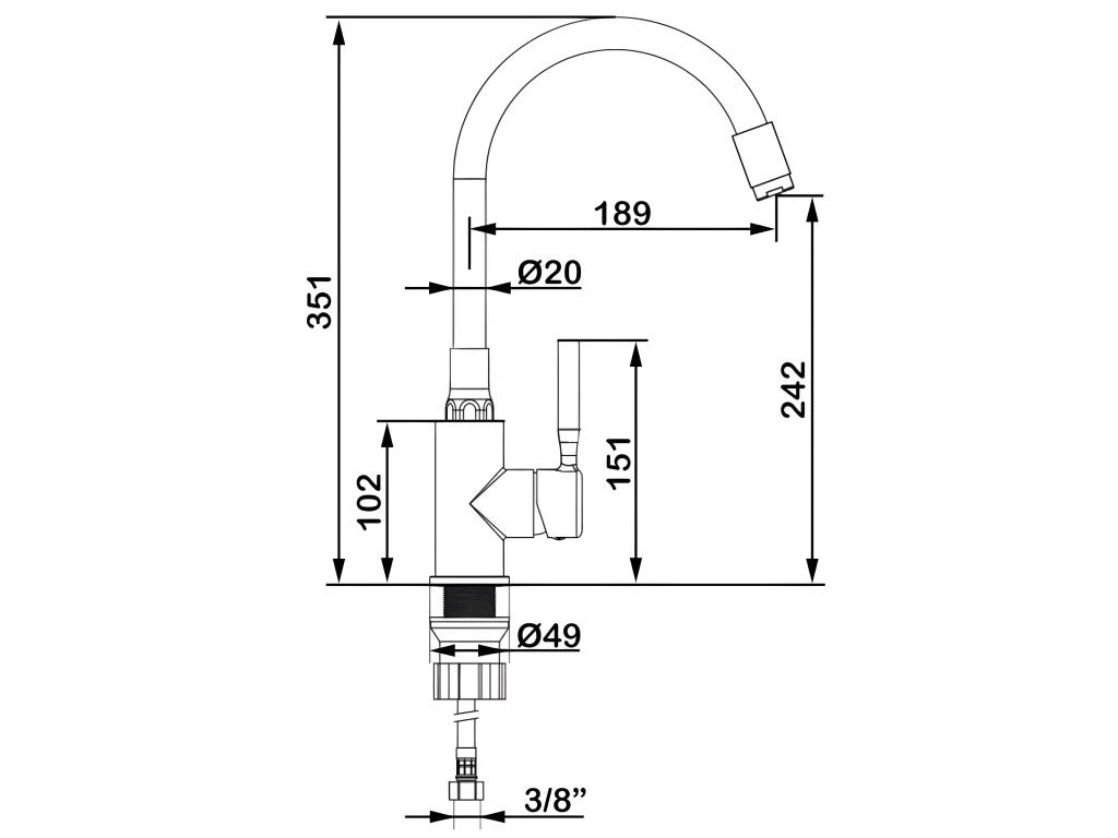 – Type: robinet de cuisine à levier unique à bec flexible;