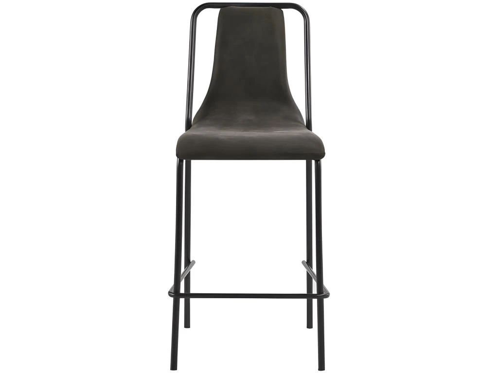 Le design est réussi par l’association d’un piètement élégant et fin en métal noir et d’une assise en microfibre finition vintage marron foncé. L’encadrement métal du dossier et la découpe de la partie rembourrée la rendent sobre et élégante