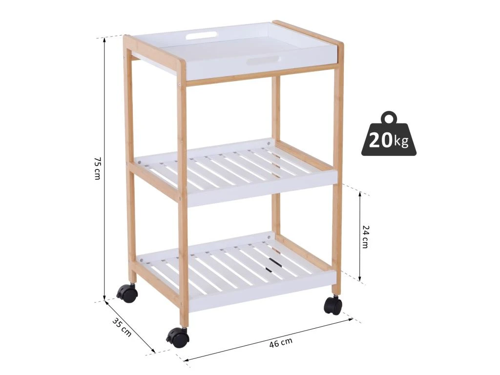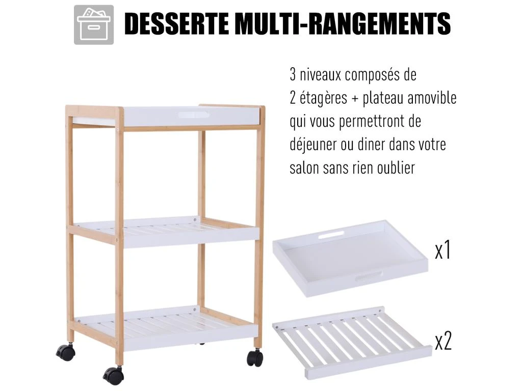 – Desserte multi-rangements : 2 étagères + plateau amovible