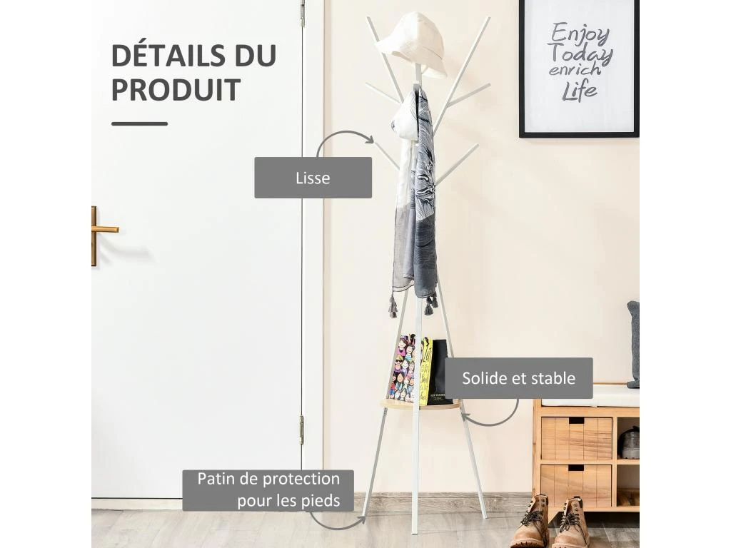 – Equipé de plusieurs patères (x 9) pour accrocher vêtements (manteaux, vestes, etc) et accessoires (sacs à main, foulards, parapluies)