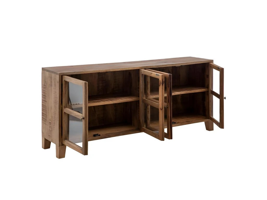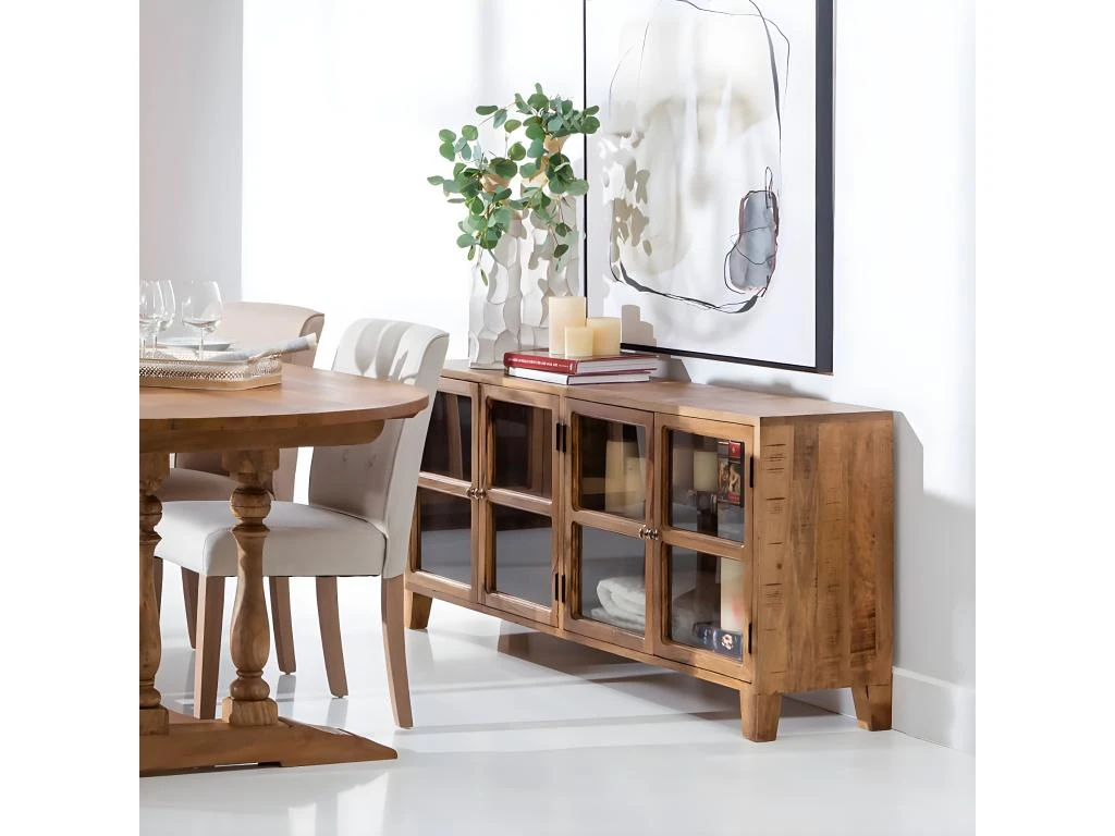 Buffet Bas 4 Portes Manguier Massif Teinté Foncé de la gamme Horton.