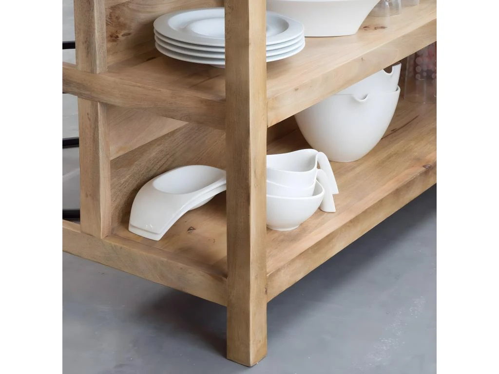 Amateur d’authentique, ne cherchez plus, nous avons trouvé l’ilot central fait pour vous ! Réalisé à partir de matériaux de qualité à savoir le bois de manguier naturel ainsi que le marbre pour son plateau. On aime particulièrement les différents espaces de rangement de ce meuble, notamment ses 2 tiroirs de chaque côté de l’ilot ainis que ses deux niches également de chaque côté.