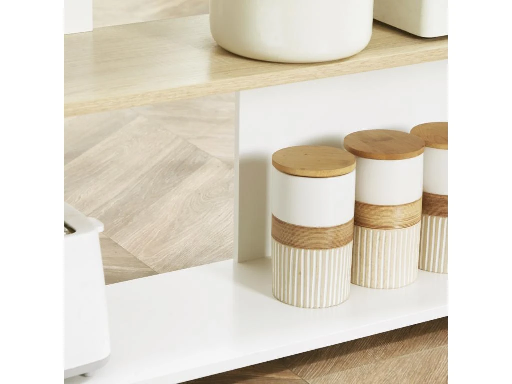 – Doté d’un grand plan de travail et de 3 étagères ouvertes avec panneaux arrière de protection, il offre un grand espace de rangement