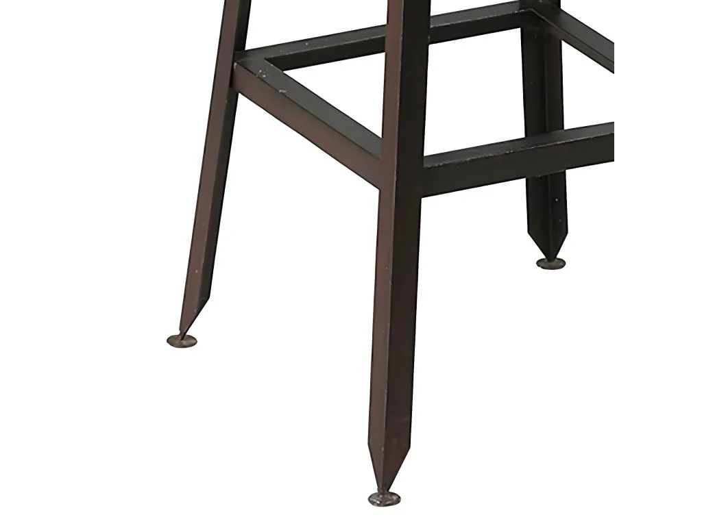 Structure en acier, finition vieillie, vernis nitro-cellulosique. Assise en mango. Pieds plastiques réglables.