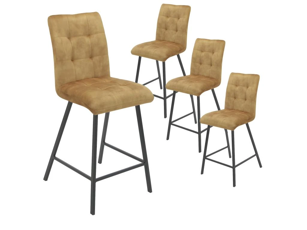 Lot de 4 Tabourets de Bar Capitonnés Jaune de la gamme John.