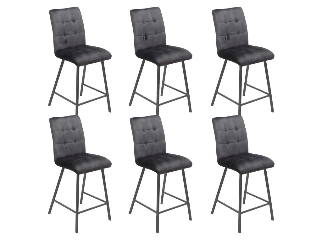 Lot de 6 Tabourets de Bar Capitonnés Gris de la gamme John.