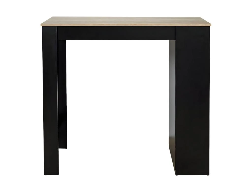 Piétement en panneau de particules, coloris noir. Plateau en MDF, finition revêtement aspect bois.