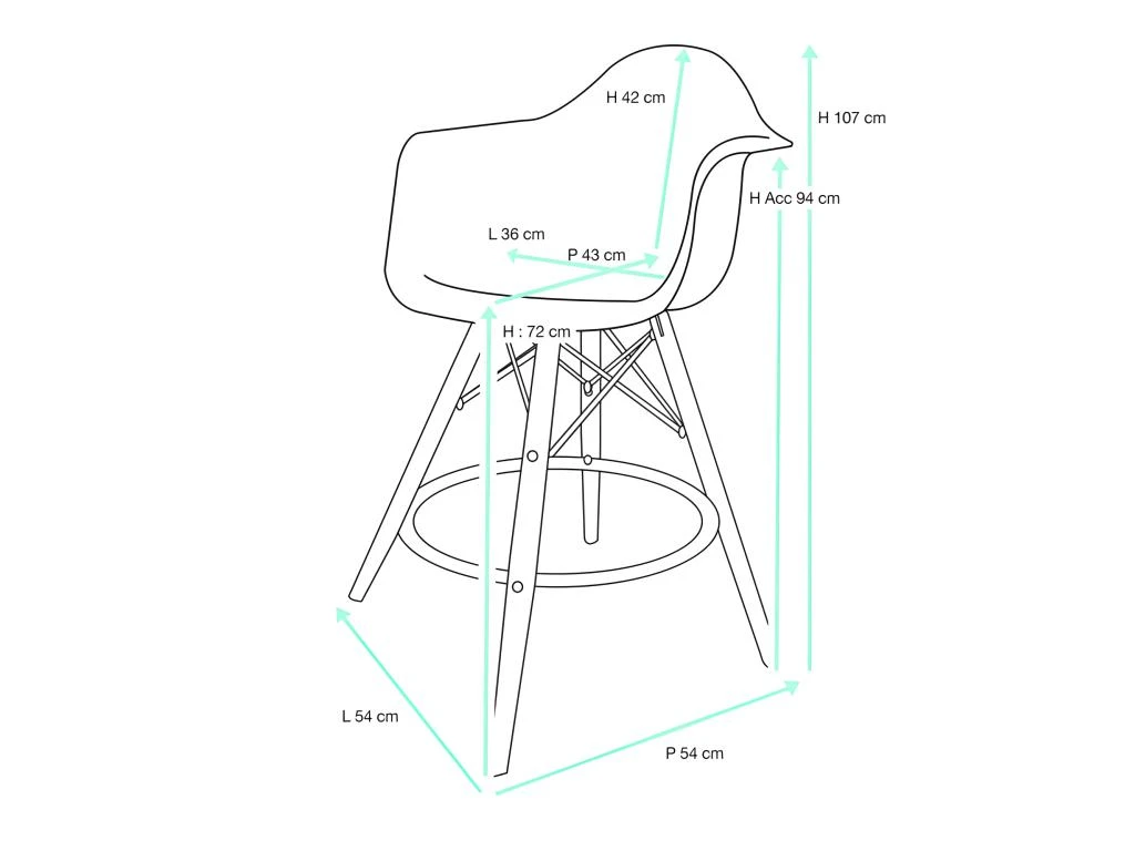 – Assise / Dossier : 38 (L) x 43.5 (P) x 40 (H)cm