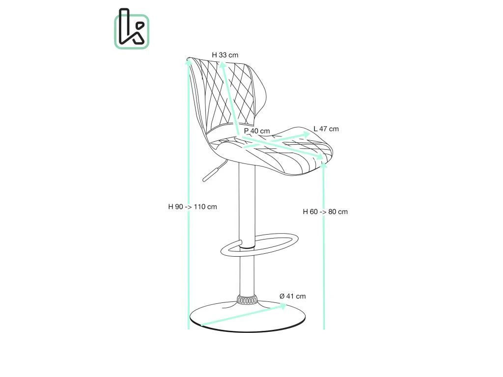 – Assise : 47 (L) x 40 (P) x 33 (H) cm
